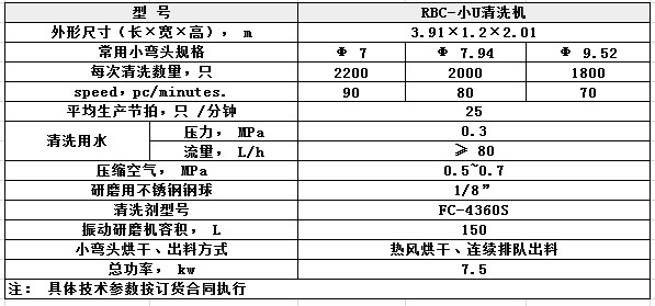 本设备用于完成热交换器上Φ 7~Φ9.52的各种规格的U型小弯头去毛刺、清洗、烘干的整个过程。